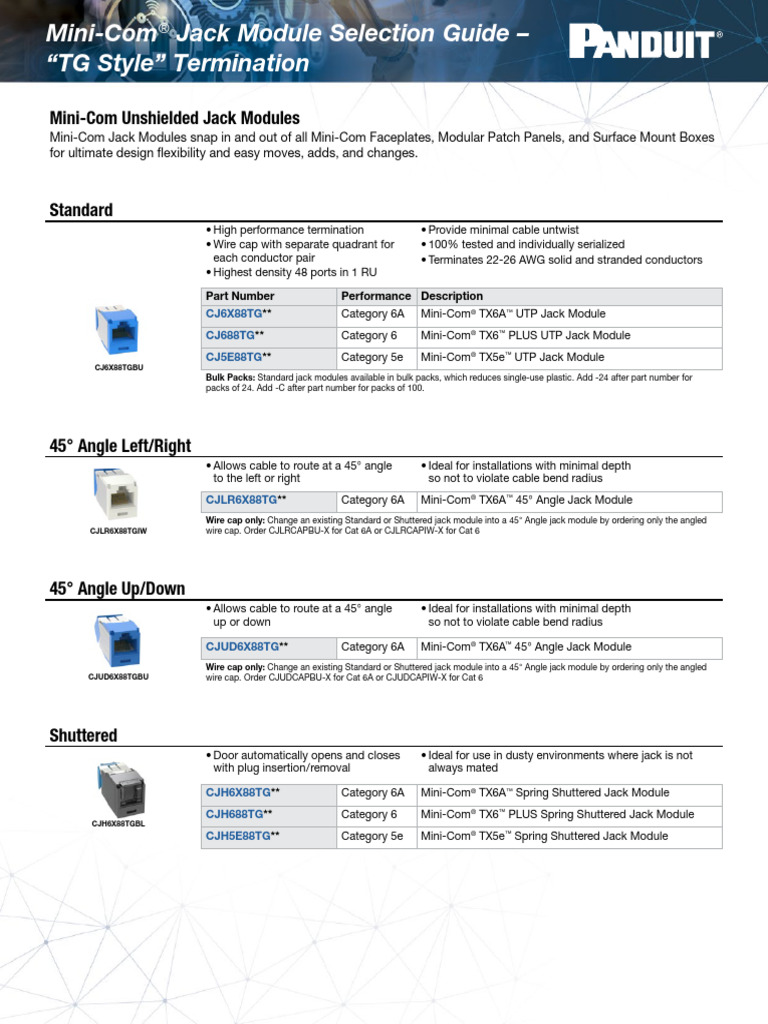 Mini-Com ® Jack Module Selection Guide – “TG Style” Termination