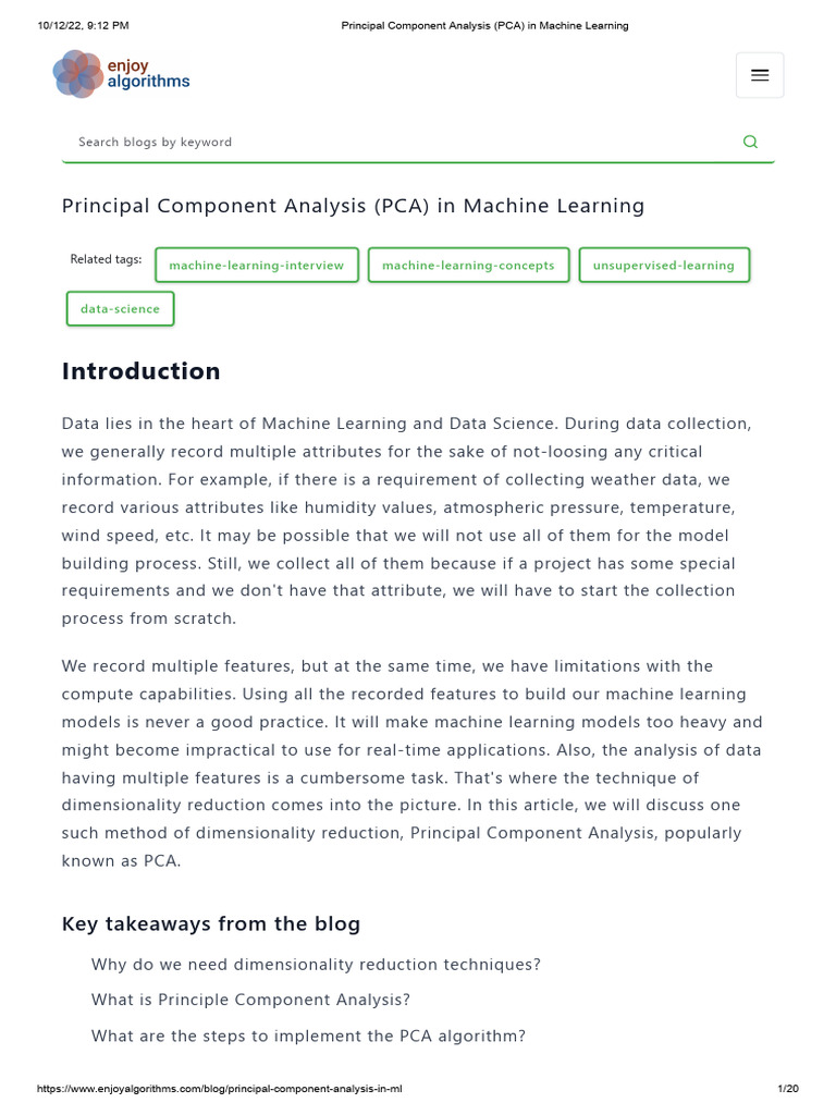 https://www.enjoyalgorithms.com/blog/principal-component-analysis-in-ml 1/20