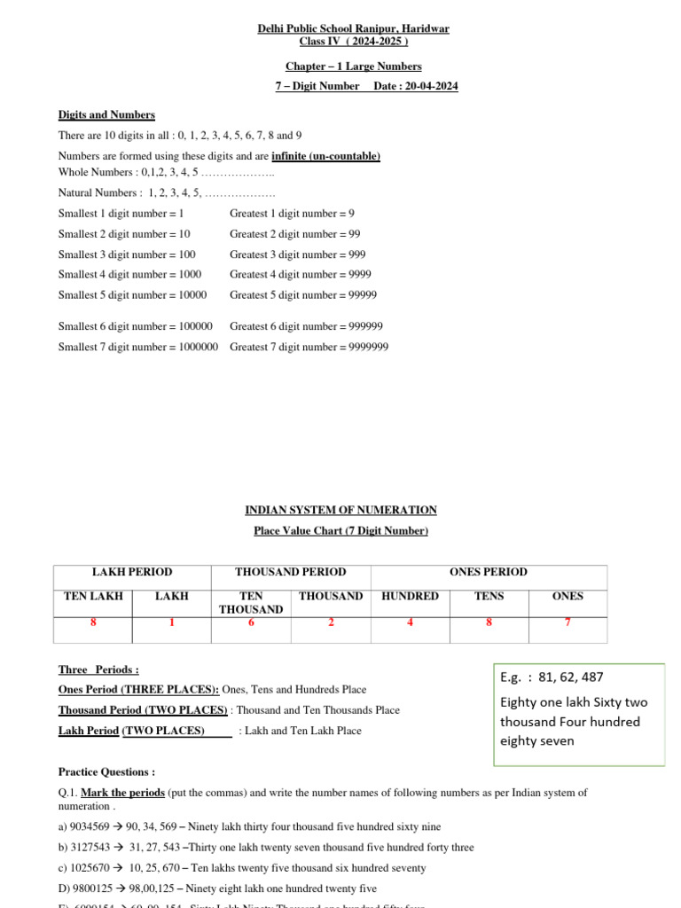 Q.3. Find the successor of largest 6 digit number and write its number name as per Indian system of numeration