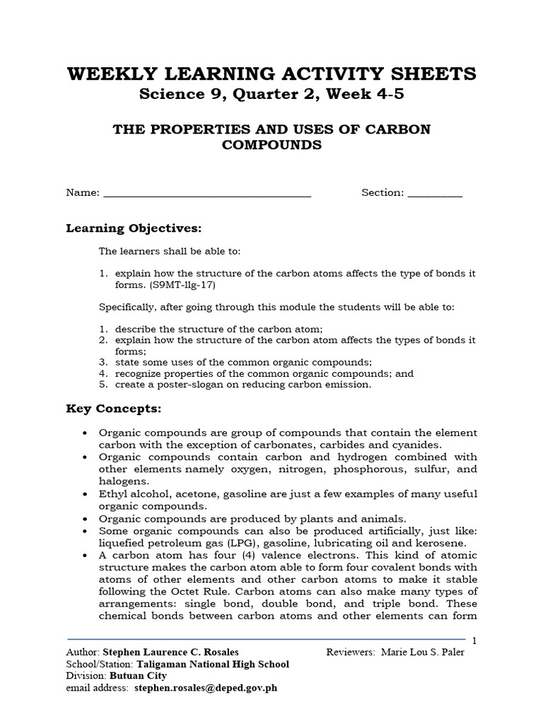 Activity 1. Carbon: How Is My Bond?