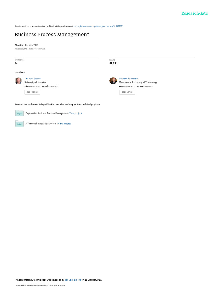 vom Brocke, J., Roswemann, M. (2014), Business Process Management, in: Wiley