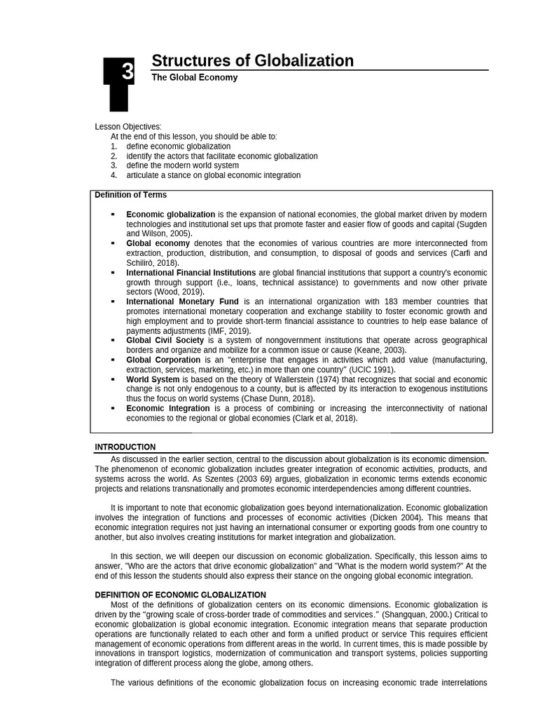 This lesson sets out to answer the following questions “what is economic globalization?", “who are the