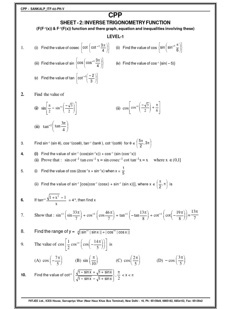 SHEET - 2: INVERSE TRIGONOMETRY FUNCTION