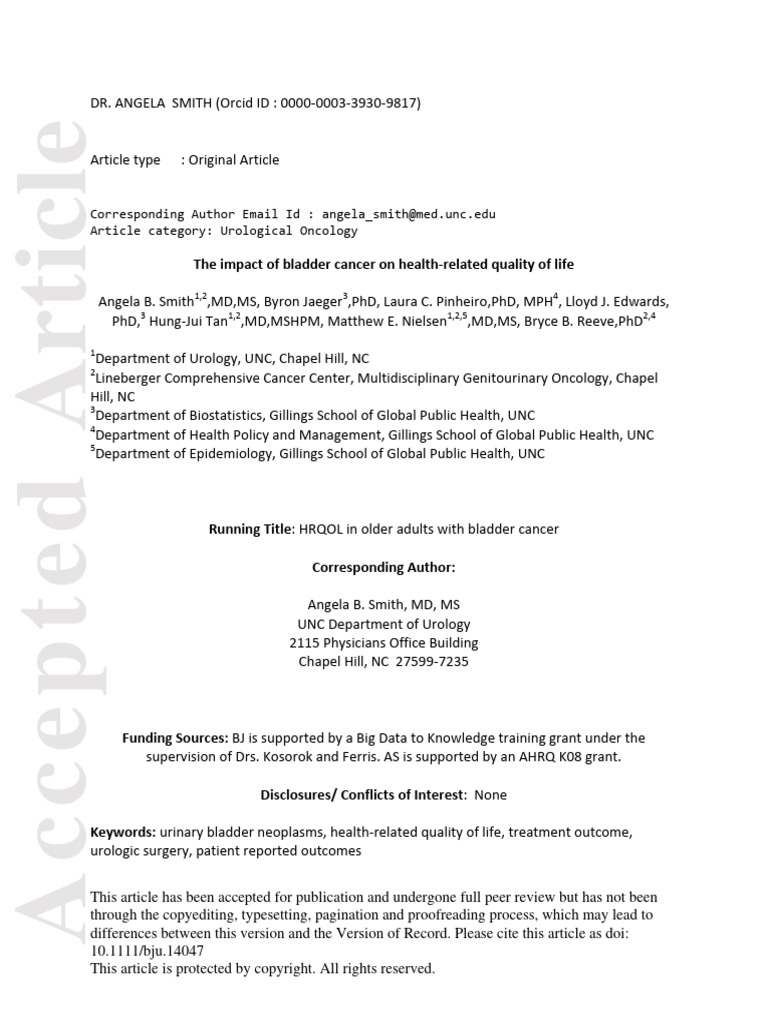 patients’ HRQOL changes following diagnosis. This is critical for patients with bladder cancer