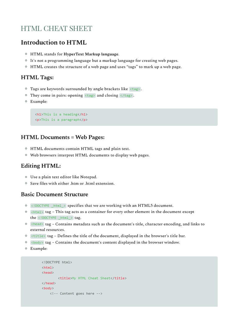 HTML creates the structure of a web page and uses “tags” to mark up a web page.