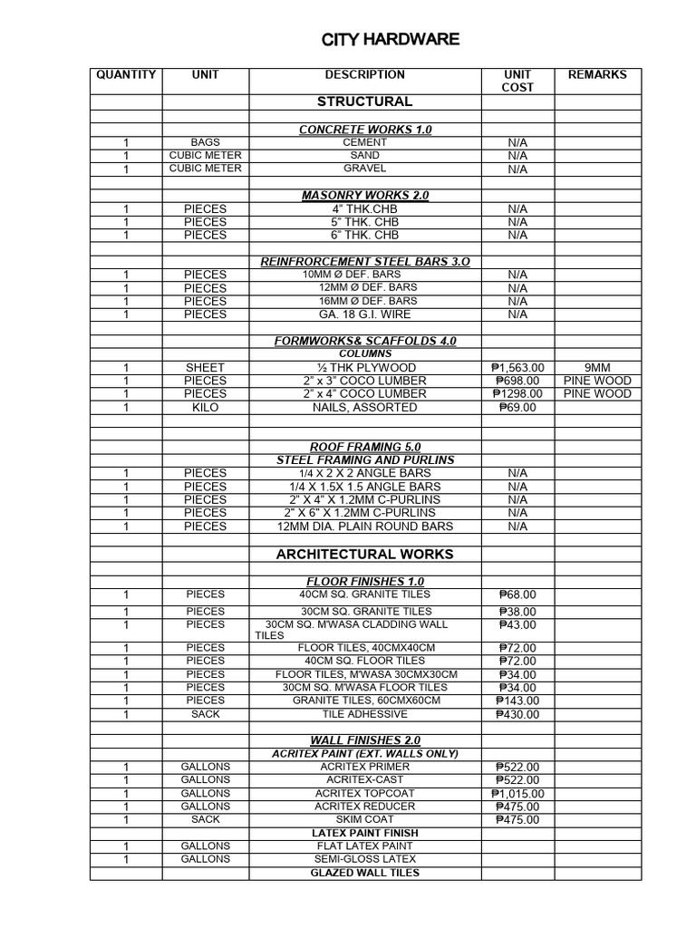 QUANTITY UNIT DESCRIPTION UNIT REMARKS