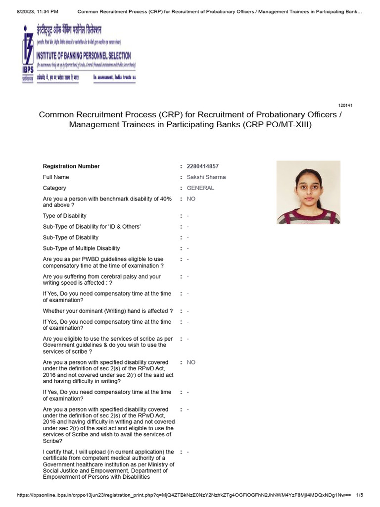 https://ibpsonline.ibps.in/crppo13jun23/registration_print.php?q=MjQ4ZTBkNzE0NzY2NzhkZTg4OGFiOGFhN2JhNWM4YzF8MjI4MDQxNDg1Nw== 1/5