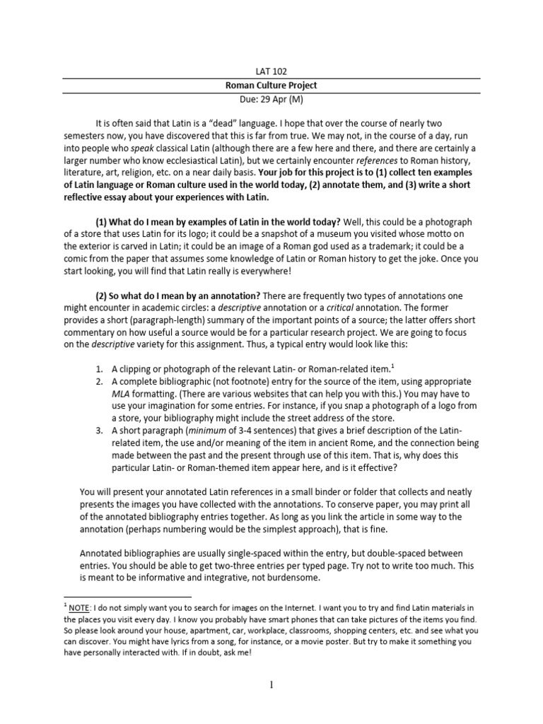 of Latin language or Roman culture used in the world today, (2) annotate them, and (3) write a short