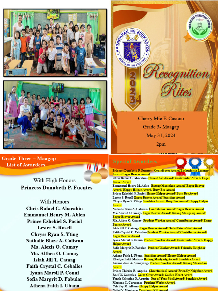 With Honors Chryss Ryan S. Yting- Sunshine Award/ Busy Bee Award/ Happy Helper