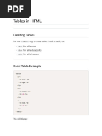 Tables in HTML Opening table tag:
