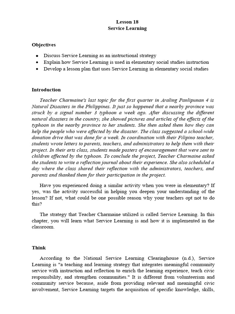 Discuss Service Learning as an instructional strategy