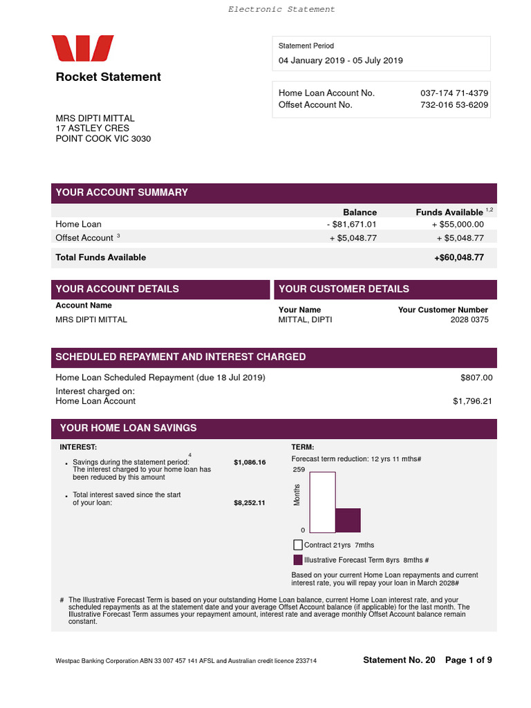 Westpac Banking Corporation ABN 33 007 457 141 AFSL and Australian credit licence 233714 Statement No. 20 Page 1 of 9