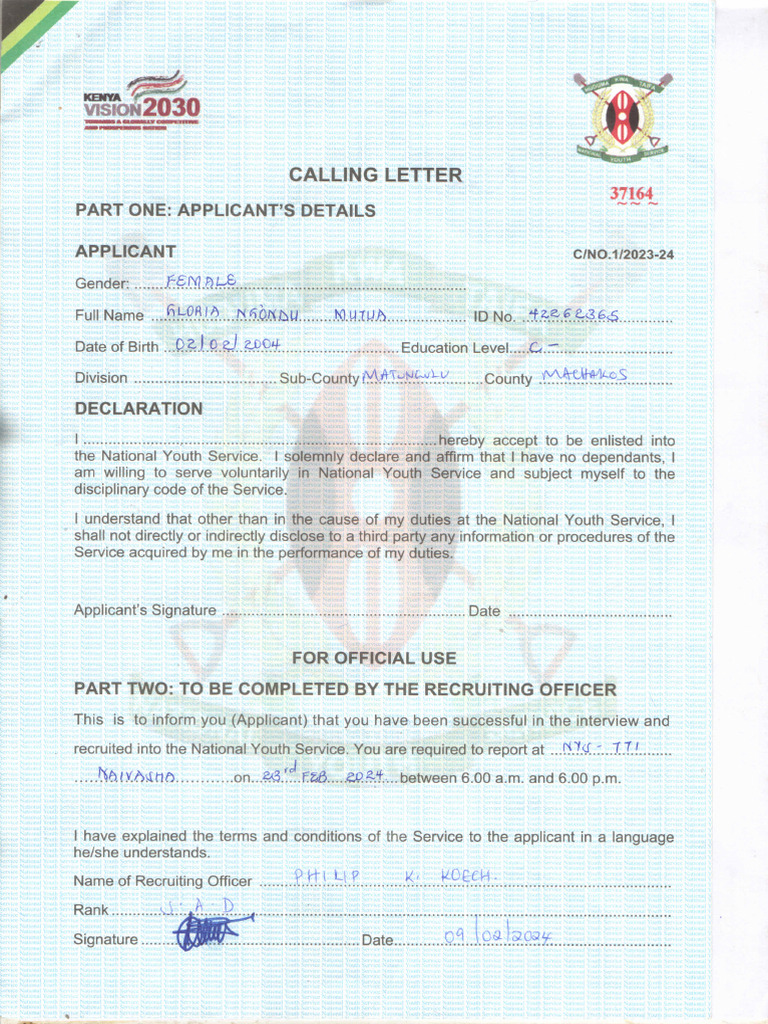 recruited into the National Youth Service. You are required to report at