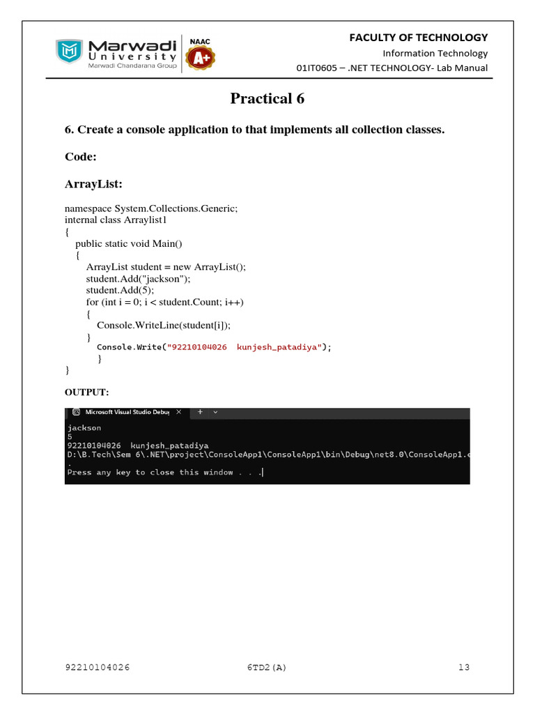 01IT0605 – .NET TECHNOLOGY- Lab Manual