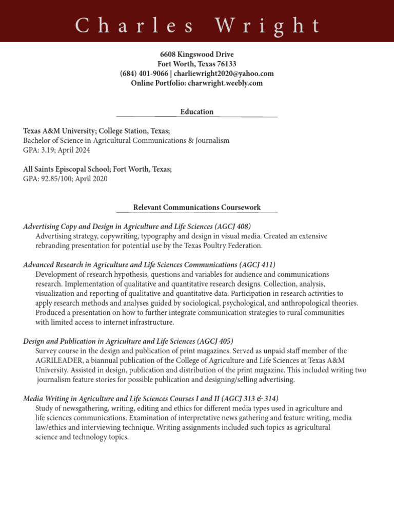 Media Writing in Agriculture and Life Sciences Courses I and II (AGCJ 313 & 314)
