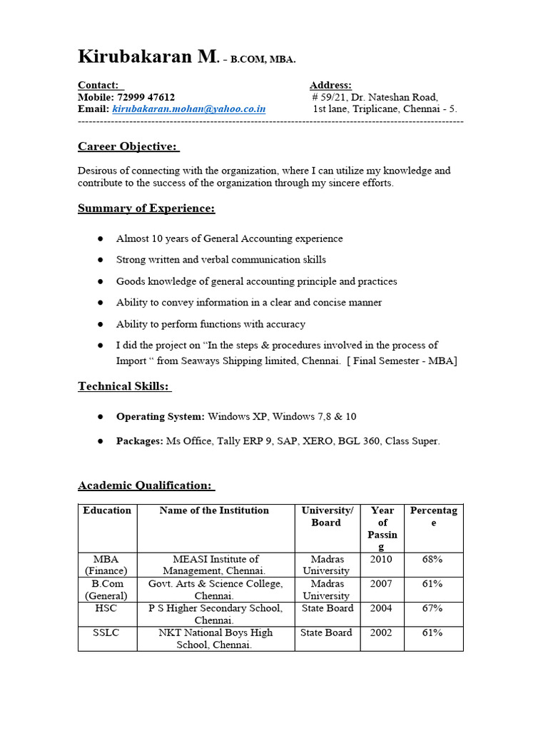 Kirubakaran M. - B.COM, MBA.