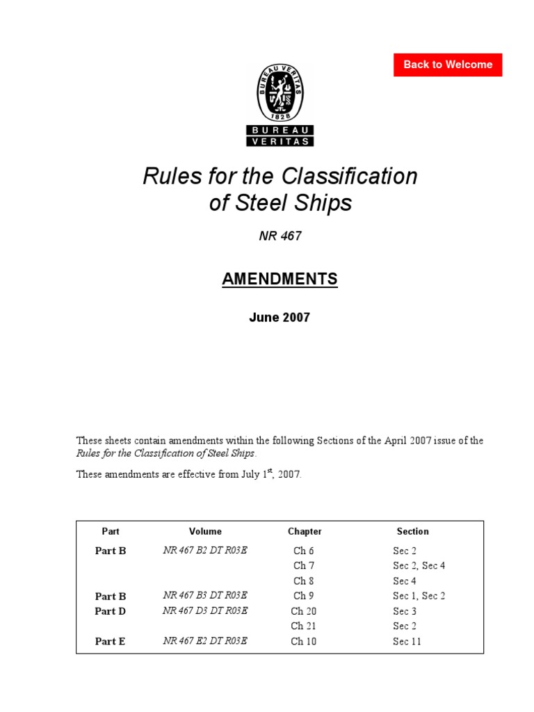 These sheets contain amendments within the following Sections of the April 2007 issue of the Rules for the Classification of Steel Ships. These amendments are effective from July 1st, 2007.