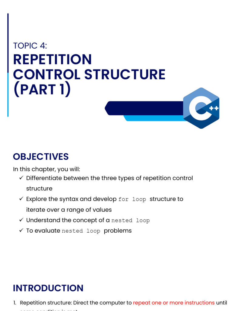 • Step 3: Repeat Step 2 until the loop condition evaluates to false