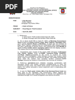 Subject: Investigation Report re Alleged Loss of One Hundred Forty-One Thousand