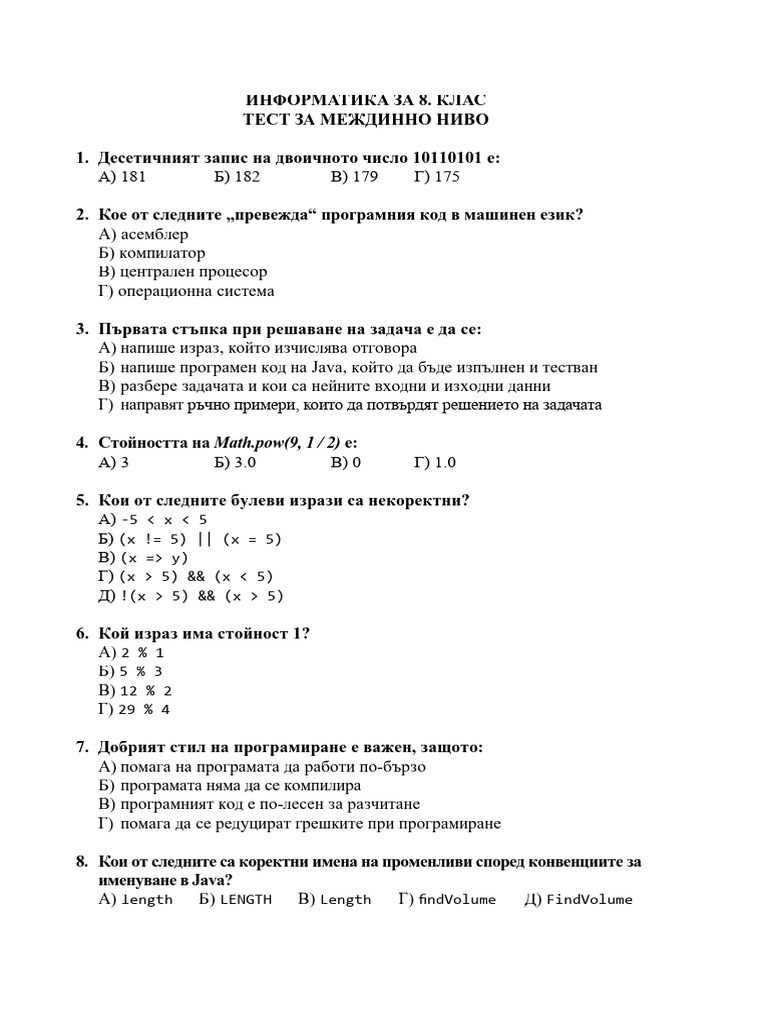 ТЕСТ ЗА МЕЖДИННО НИВО