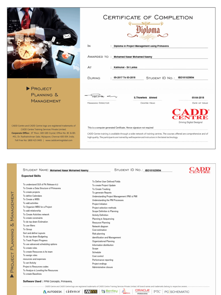 Diploma in Project Management using Primavera