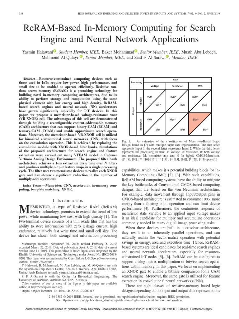 HALAWANI et al.: ReRAM-BASED IN-MEMORY COMPUTING FOR SEARCH ENGINE AND NN APPLICATIONS 389
