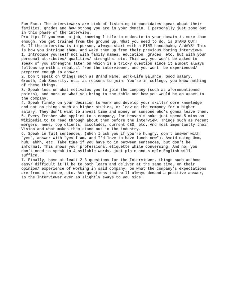 0. If the interview is in person, always start with a FIRM handshake, ALWAYS! This