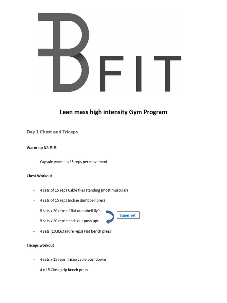 - 5 sets x 20 reps of flat dumbbell fly’s