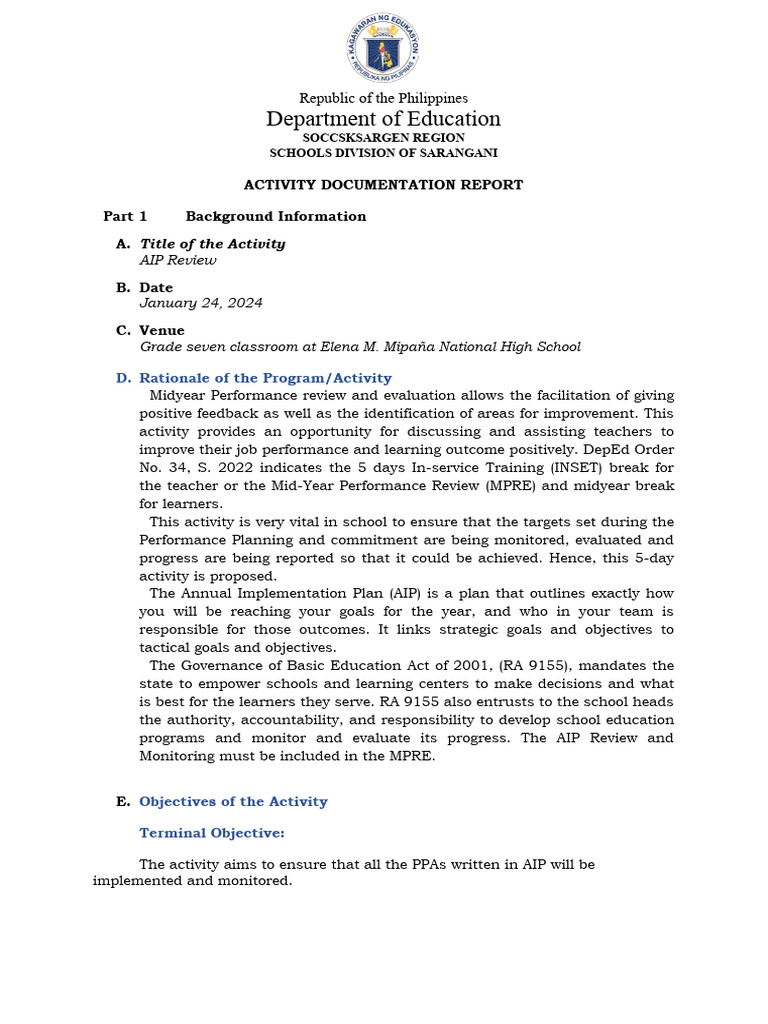 1. To review all the PPAs in the AIP if they are implemented.