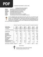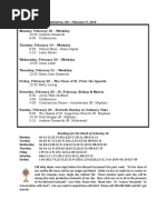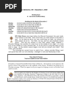 (Insert Graphic 2101-0057.tif) Mass Intentions for the Week of November 28 December 4 Monday, November 28 Advent Weekday 6:30 Carl R. Ryan 12:05 Rita V. Longhan-Litzke Tuesday, November 29 Advent Weekday 5:15 Lester Stenger Wednesday, November 30 St. Andrew Apostle 6:30 Allen & Marcella Gardner 12:05 John Kelly Thursday, December 1 Advent Weekday 6:30 Cyrill (Shorty) Wargo Anniversary Friday, December 2 Advent Weekday 6:30 Rosemary Pintur 12:05 Carl Frank Saturday, December 3 St. Francis Xavier, Priest 8:30 Michael Jerin Sr. 4:00 Bert A. Smith Sr. Sunday, December 4 Second Sunday of Advent 7:30 The People of Saint Augustine Church 9:00 Bette Vera Milich 11:00 Elio Ciccolini 5:15 Andrew Posavac Anniversary Monday Tuesday Wednesday Thursday Friday Saturday Sunday Readings for the Week of November 28 Is 2:1-5 (first choice), Ps 122:1-2,3-4,4cd-5,6-7,8-9, Mt 8:5-11 Is 11:1-10, Ps 72:1-2,7-8,12-13,17, Lk 10:21-24 Rm 10:9-18, Ps 19:8,9,10,11, Mt 4:18-22 Is 26:1-6, Ps 118:1 and 8-9,19-21,25-27a, Mt. 7:21,24-27 Is 29:17-24, Ps 27:1,4,13-14, Mt 9:27-31 Is 30:19-21,23-26, Ps 147:1-2,3-4,5-6, Mt 9:35-10:1,5a,6-8 Is 40:1-5,9-11, Ps 85:9-10,11-12,13-14 (8), 2 Pt 3:8-14, Mk 1:1-8