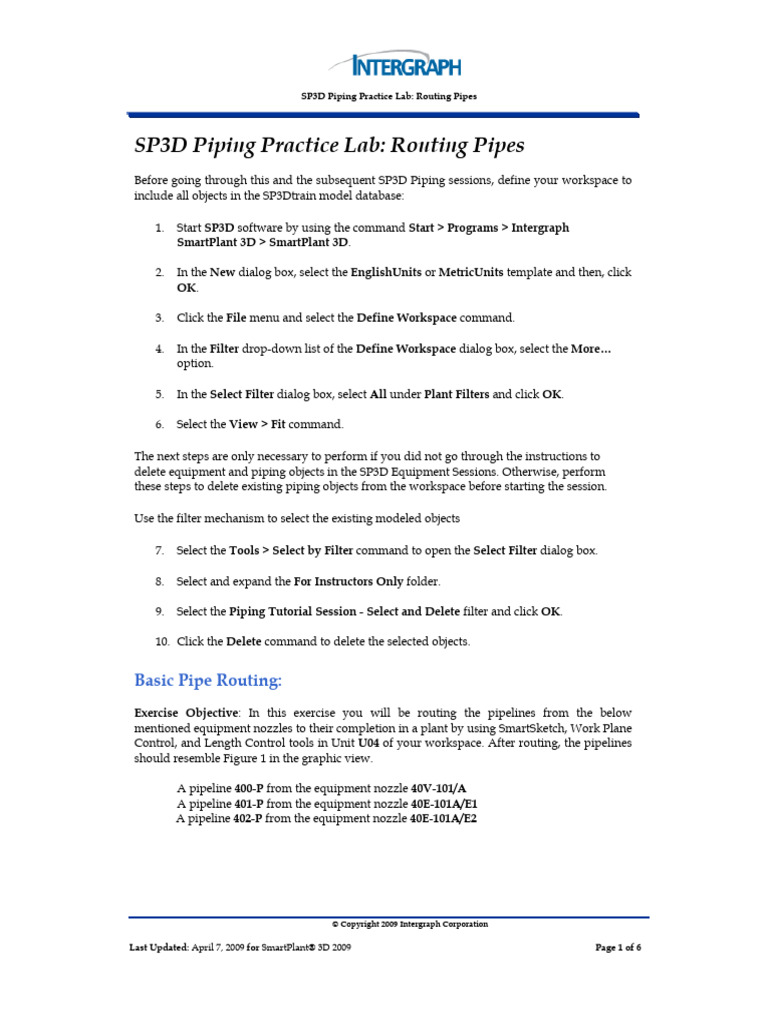 SP3D Piping Practice Lab Routing Pipes