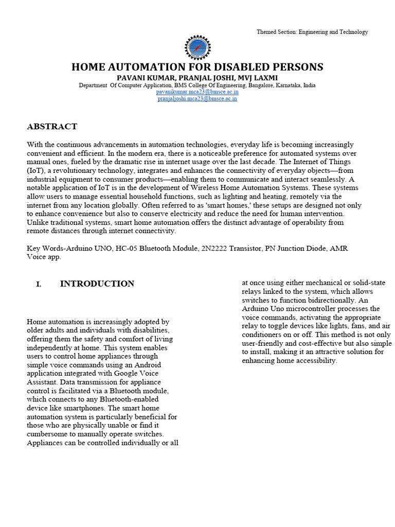 of Technology, University of Pune, Designing a Home Automation System