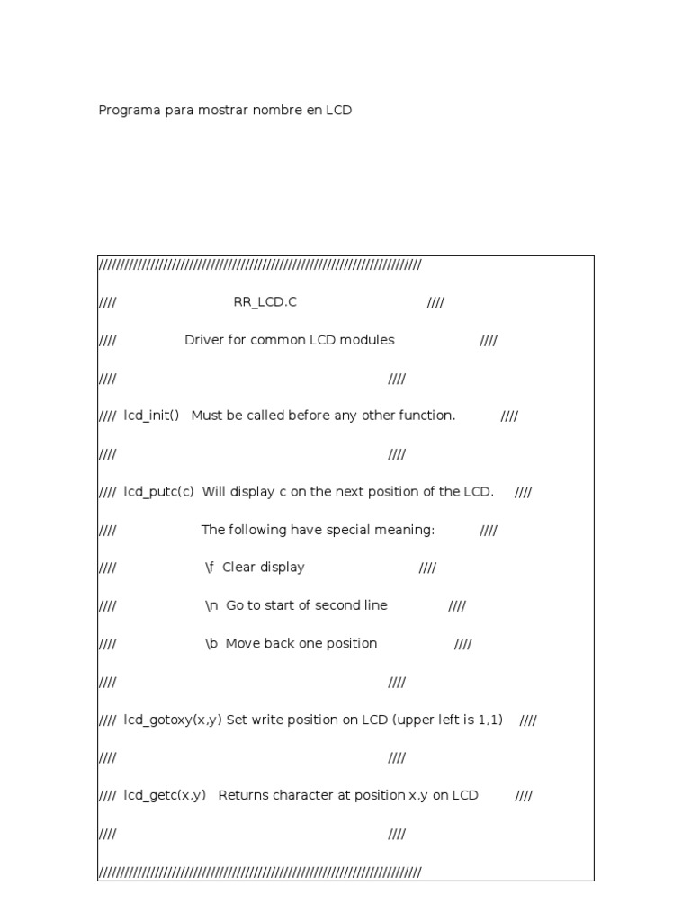 #define set_tris_puerto(x) set_tris_d(x) // Para definir sentido en puerto de datos #define set_tris_control(x) set_tris_e(x) // Para definir sentido en puerto de control #define lcd_line_two 0x40 // Define direccin de inicio de segunda lnea