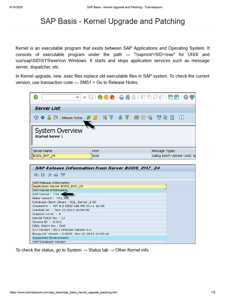 https://www.tutorialspoint.com/sap_basis/sap_basis_kernel_upgrade_patching.htm 5/5