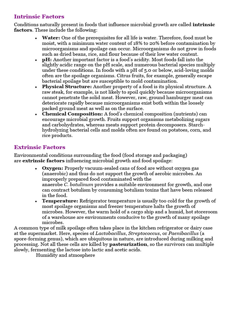 Conditions naturally present in foods that influence microbial growth are called intrinsic