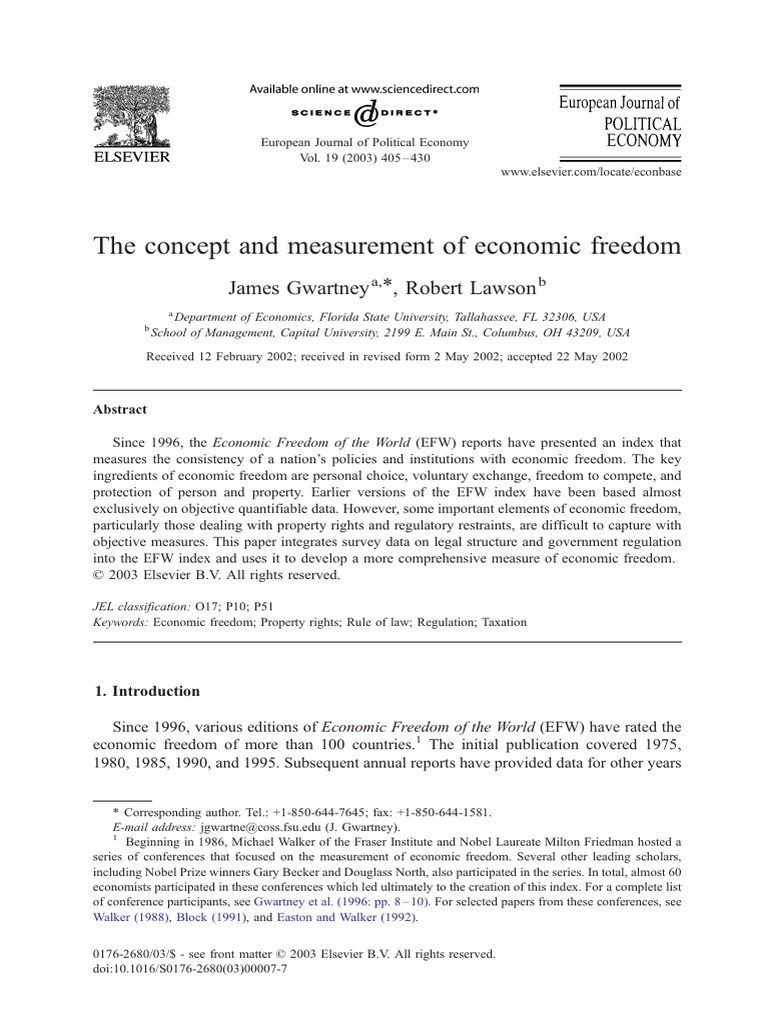 J. Gwartney, R. Lawson / European Journal of Political Economy 19 (2003) 405–430 407
