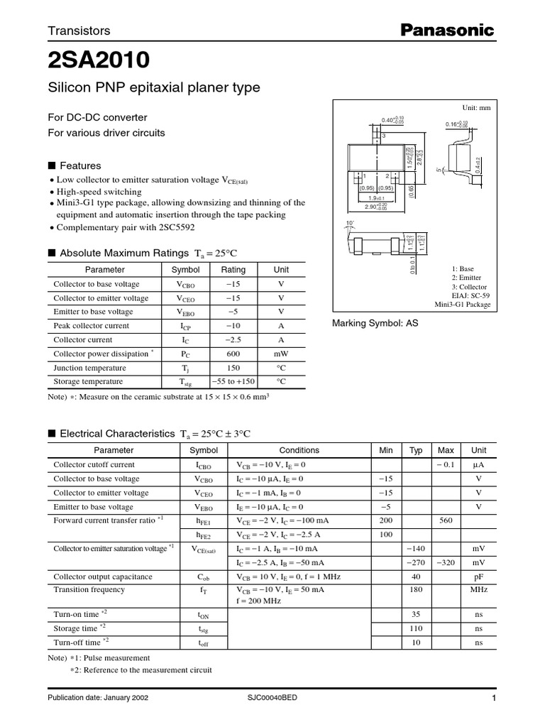 Peak collector current ICP −10 A Marking Symbol: AS