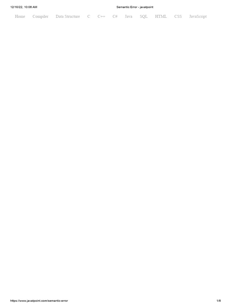 https://www.javatpoint.com/semantic-error 1/6