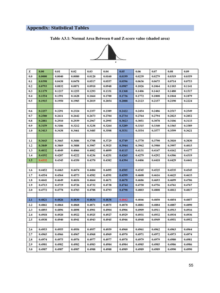 Table A3.1: Normal Area Between 0 and Z-score value (shaded area)