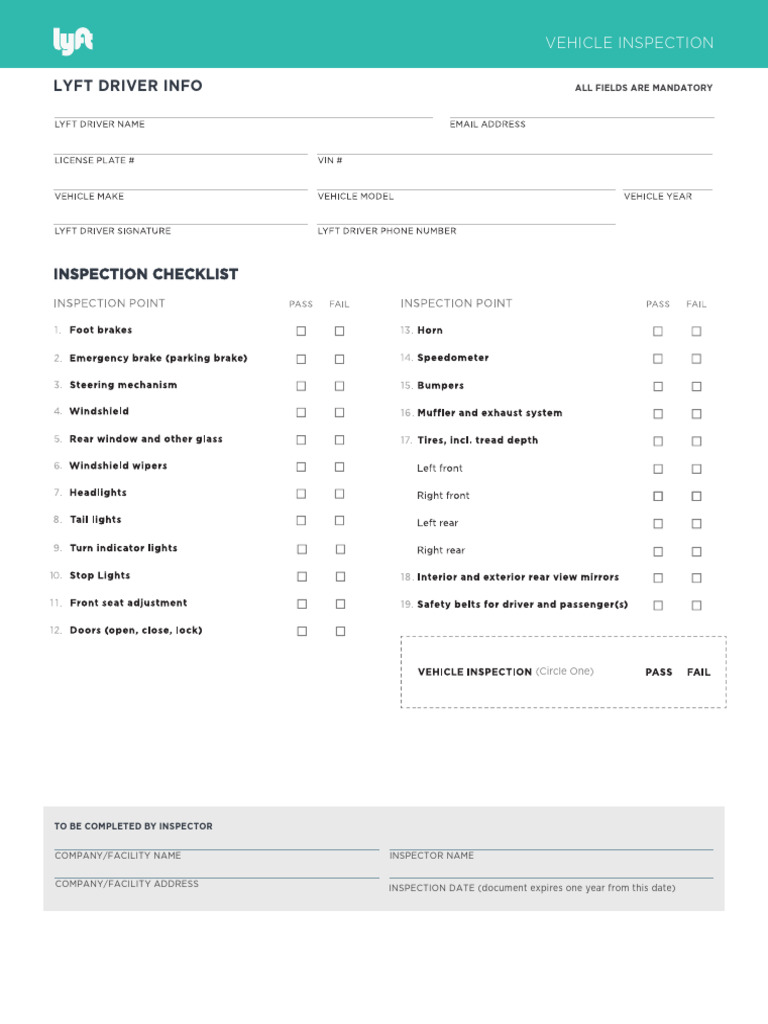 Lyft Vehicle Inspection Form