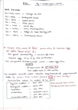 - Basic Concepts of RCC: Provides an overview of key RCC codes and basic concepts like water-cement ratio and concrete strength.