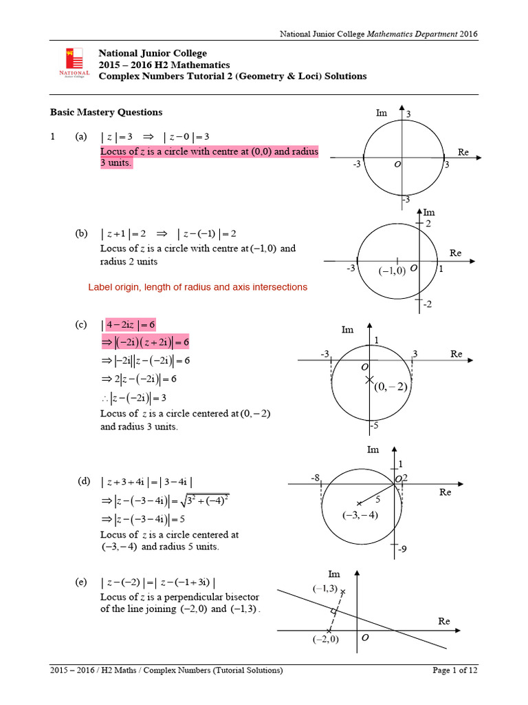 Complex Numbers Tutorial 2 (Geometry & Loci) Solutions