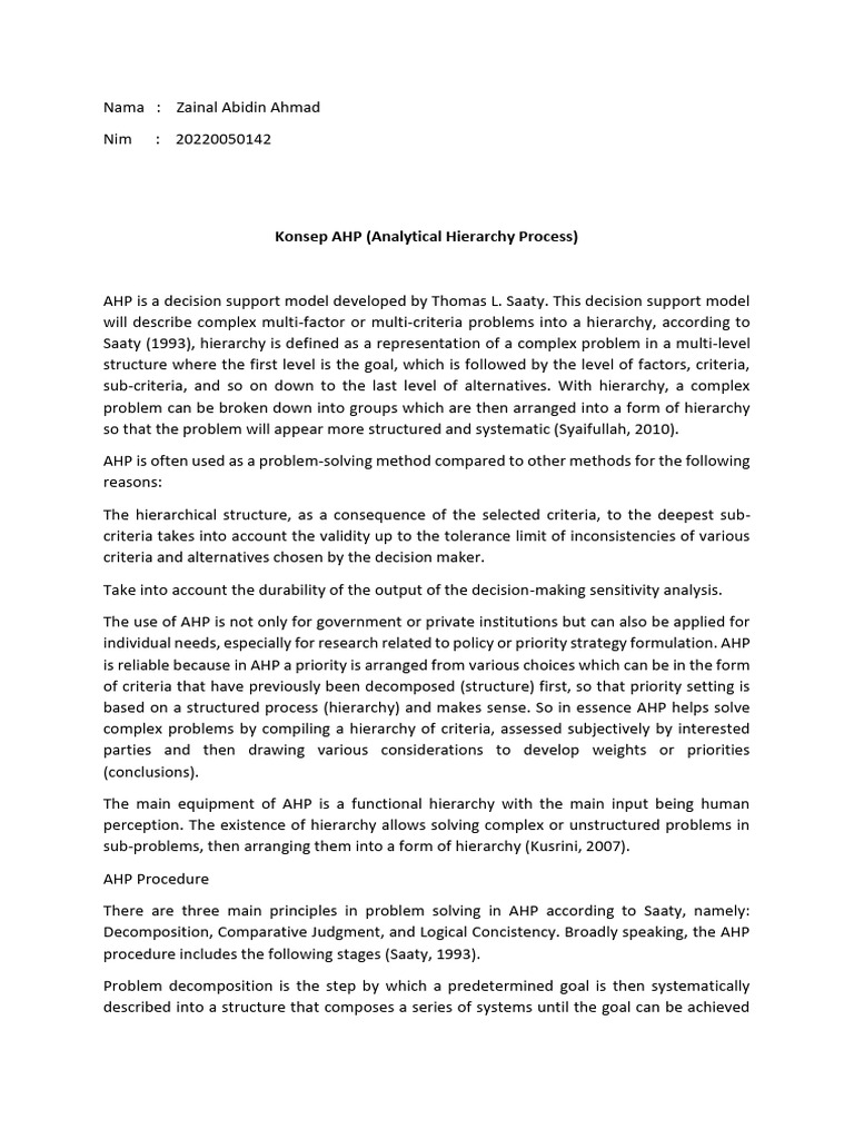AHP is a decision support model developed by Thomas L. Saaty. This decision support model