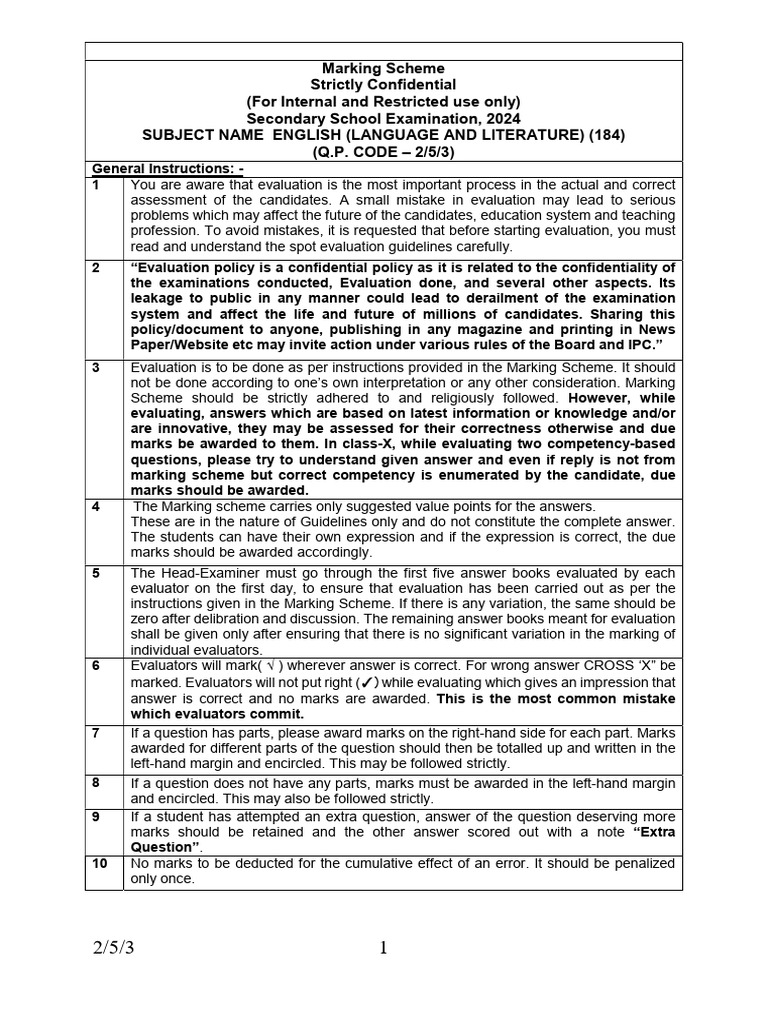evaluation is carried out strictly as per value points for each answer as given in the