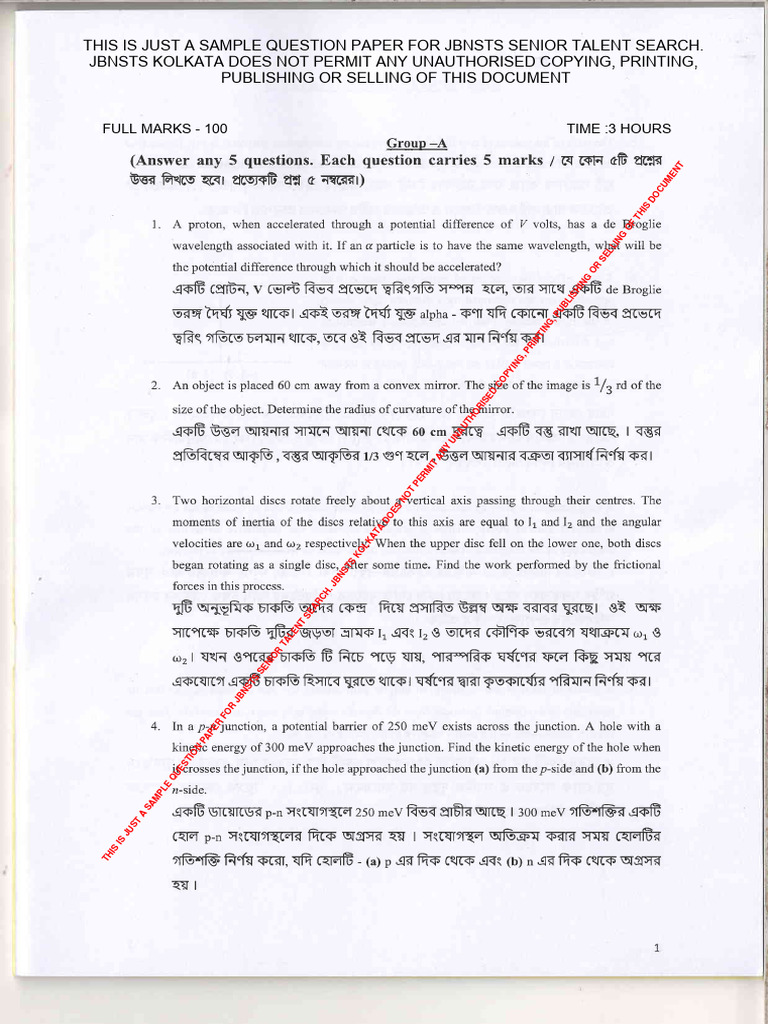 1. A proton, when accelerated through a potential difference of Z volts, has a de Broglie