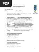 Name: ______________________________ Class/ Sec: 7 ____