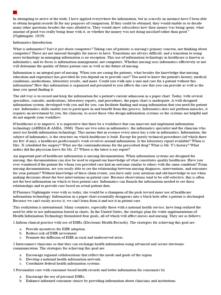 subspecialties in informatics, of which nursing is one. Embracing informatics will allow nurses to assess and evaluate