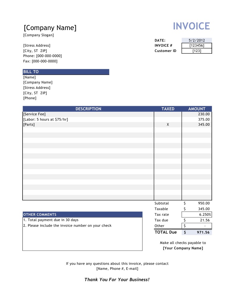 Bill To: [Name] [Company Name] [Stress Address] [City, ST ZIP] [Phone]