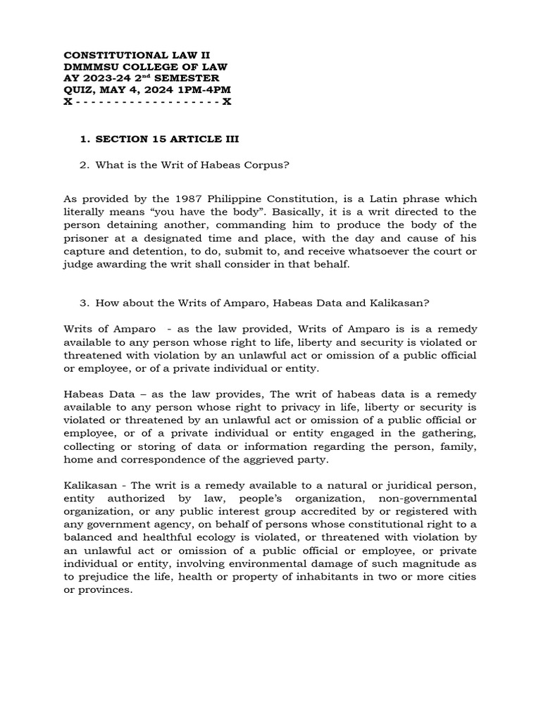 2. What is the Writ of Habeas Corpus?