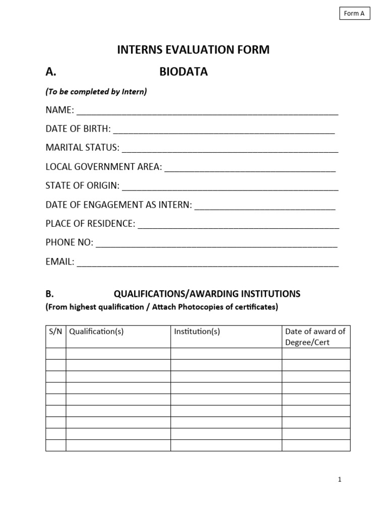 DATE OF ENGAGEMENT AS INTERN: ____________________________